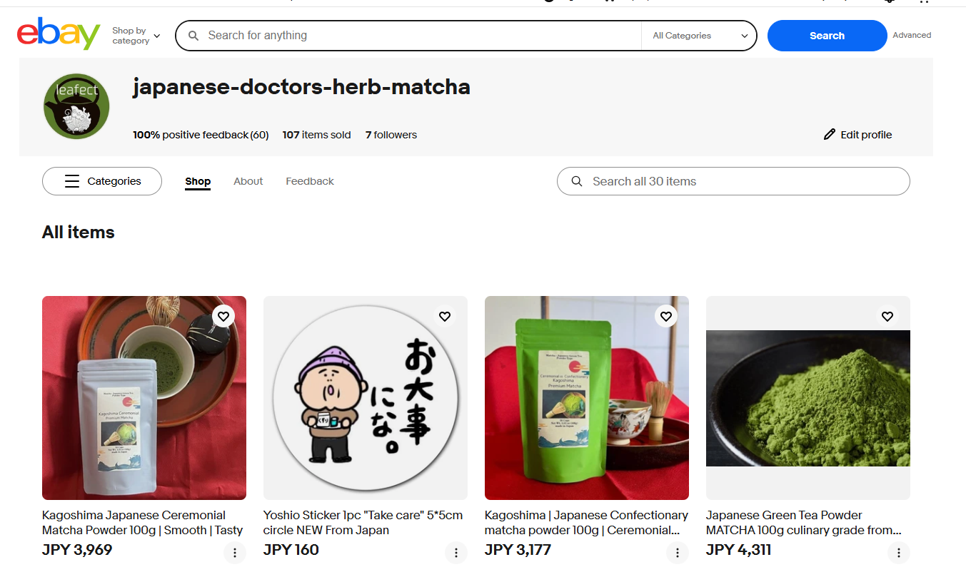 Since 2025, we have been actively selling our Japanese matcha and herbal tea products on eBay.